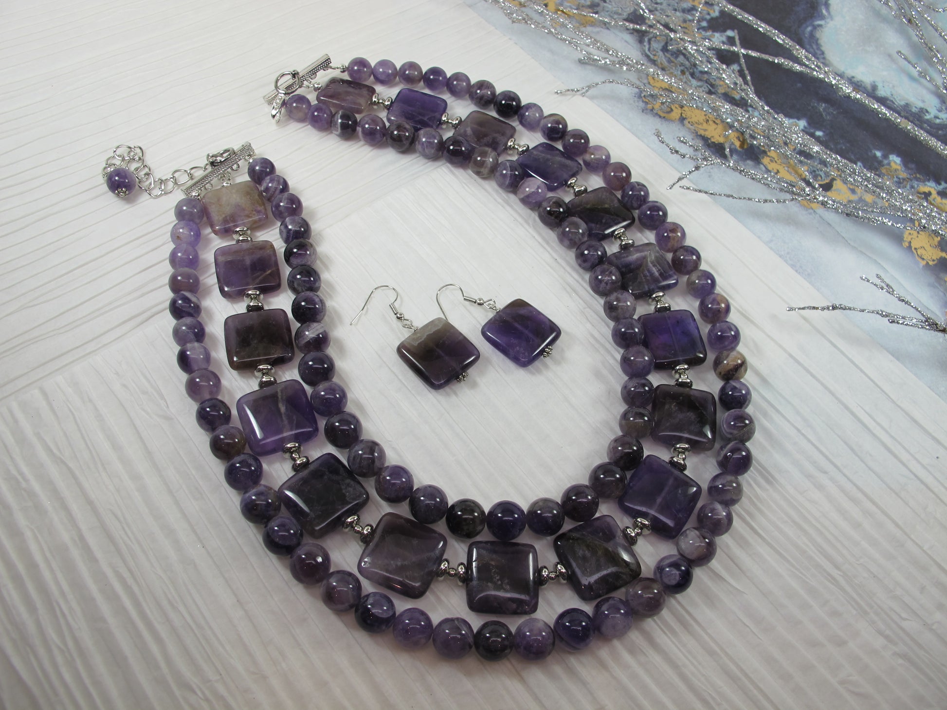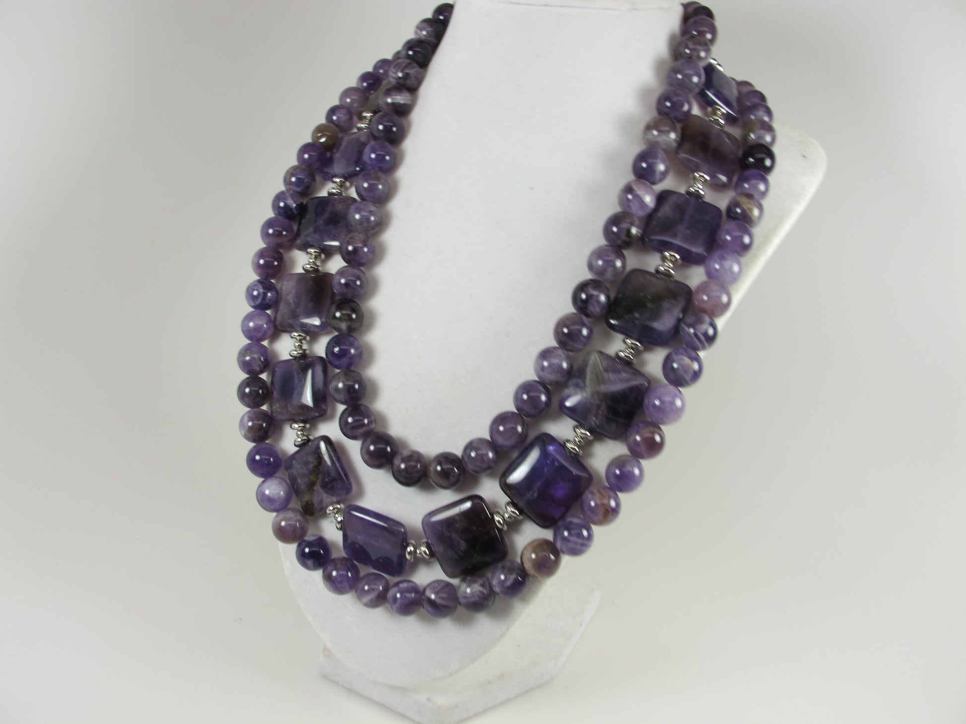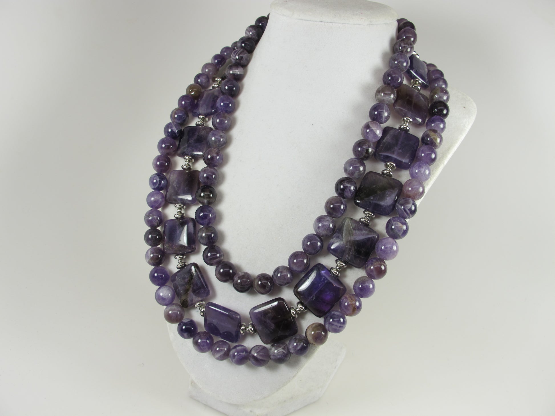 A bold and dramatic statement necklace featuring genuine round amethyst beads 10 mm and square amethyst beads 20mm x 20mm. 2 strands, very ELEGANT! HEAVY!