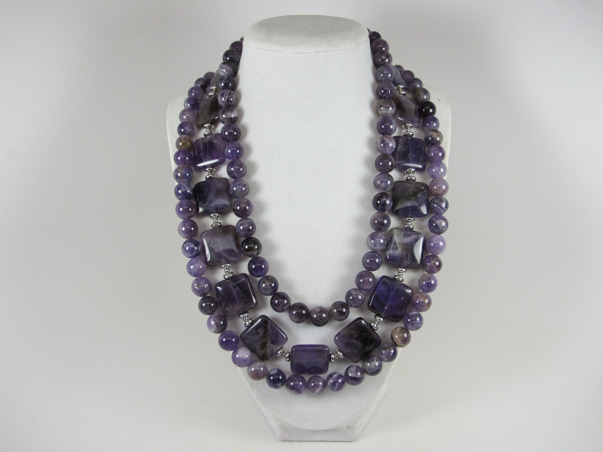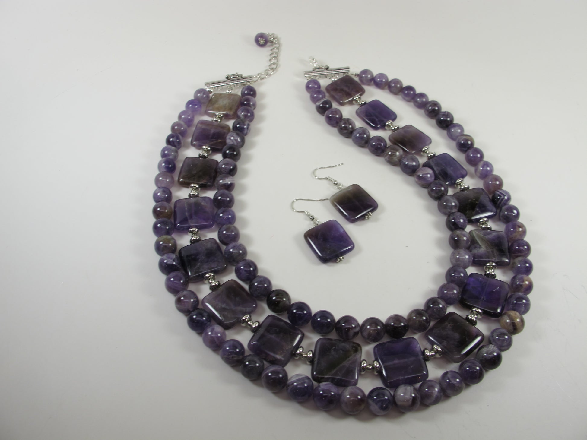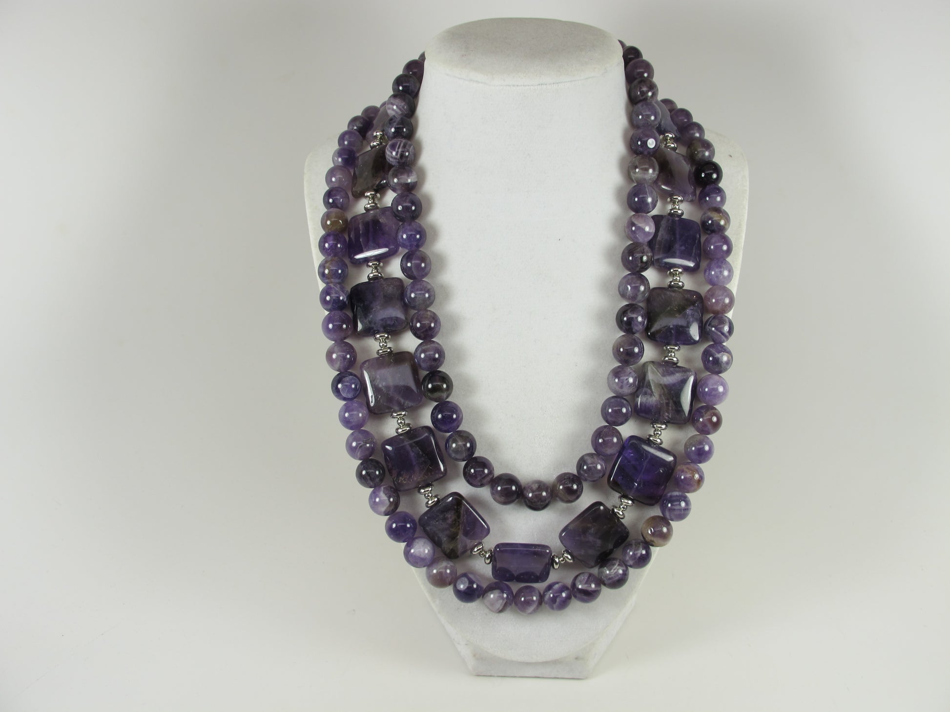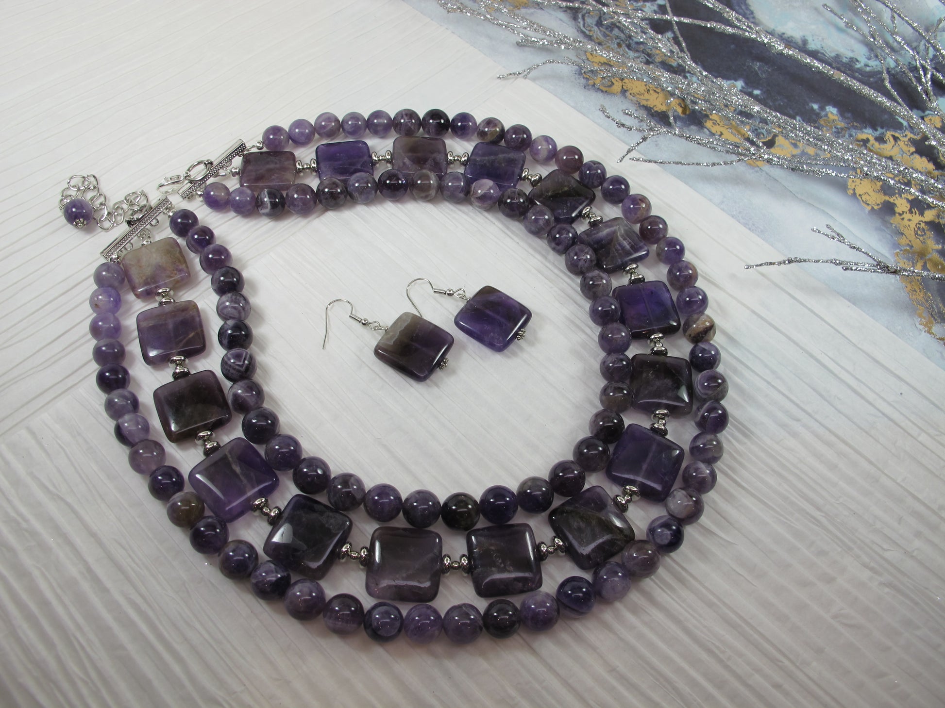 A bold and dramatic statement necklace featuring genuine round amethyst beads 10 mm and square amethyst beads 20mm x 20mm. 2 strands, very ELEGANT! HEAVY!