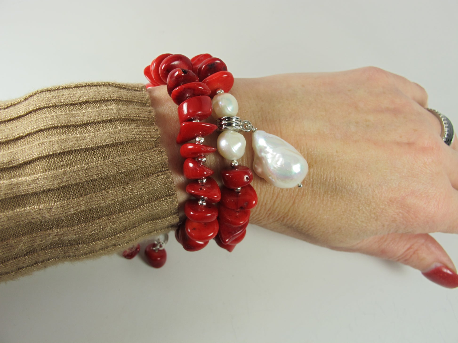 This statement chunky bracelets is made from natural,red coral beads.