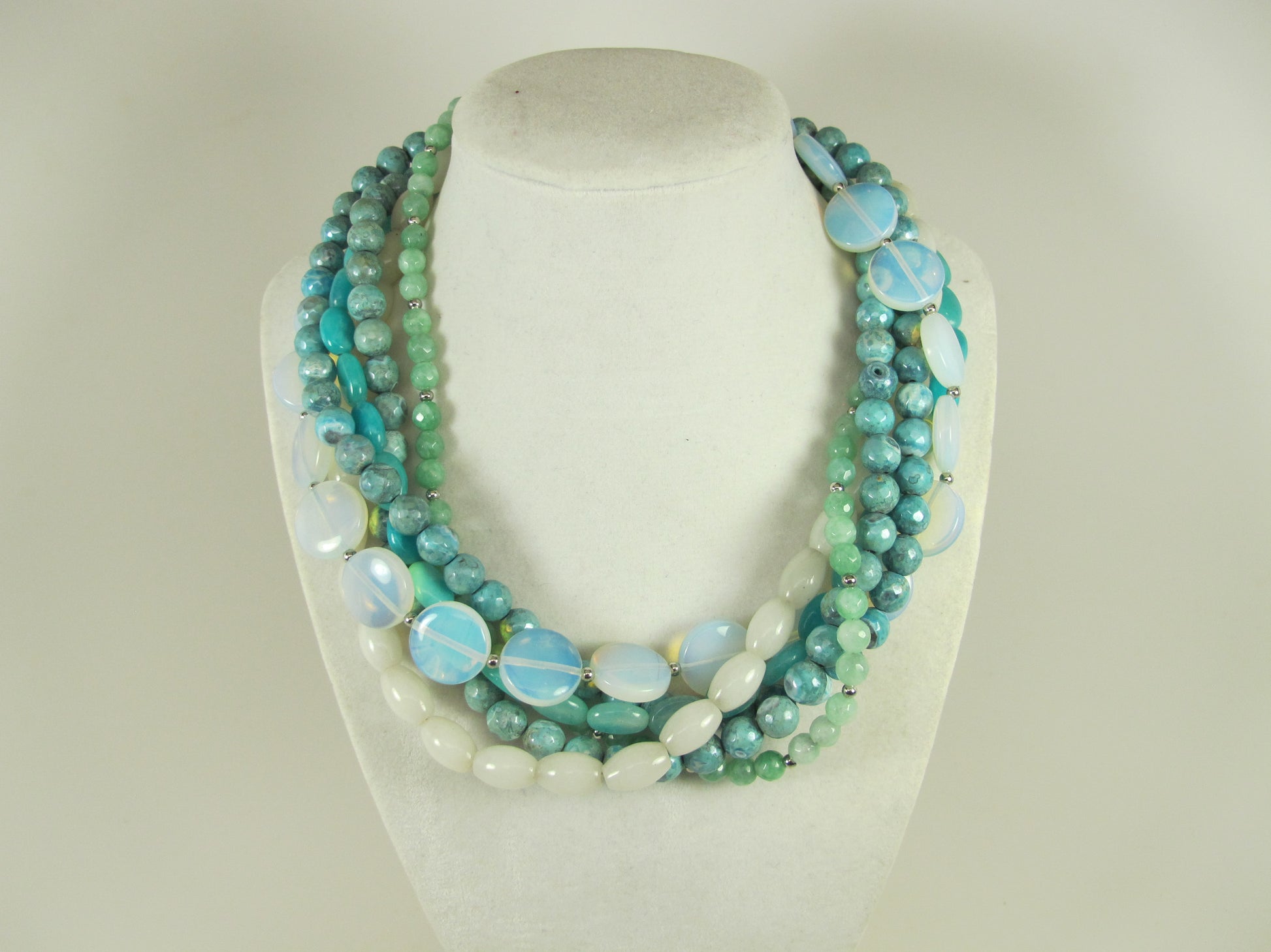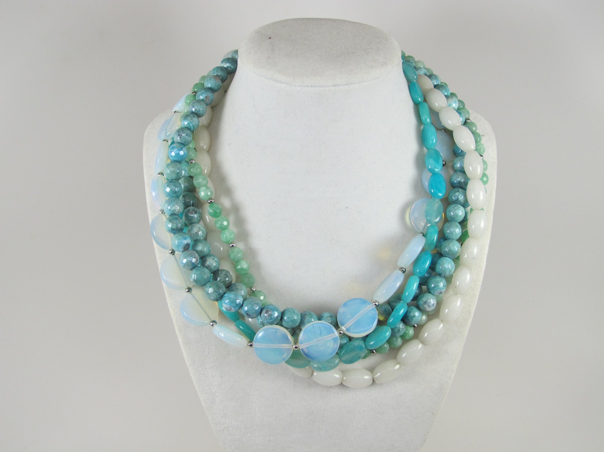 This statement chunky necklace is made from natural gemstone beads, assorted. 6 STRANDS!!