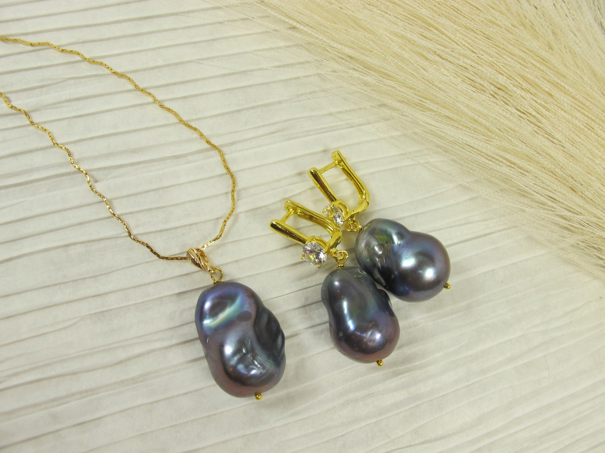 Genuine black baroque pearl necklace and earrings set, statement black peacock pearl necklace, chunky black baroque pearl jewelry set