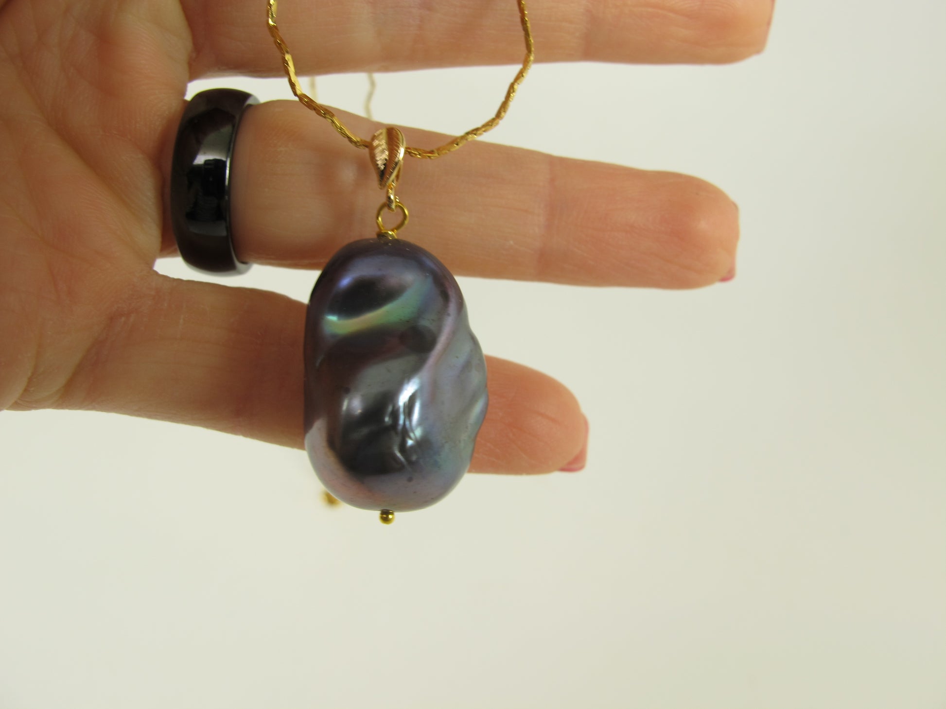Really stunning, large baroque pearl necklace. Pendant with chain. Chain 17" with clasp. Pearl is 25mm x 17mm