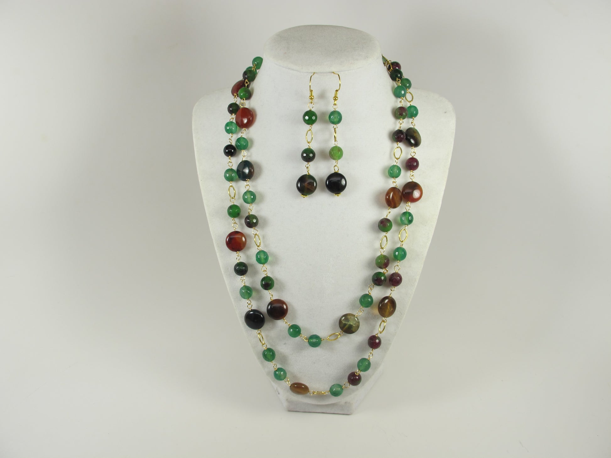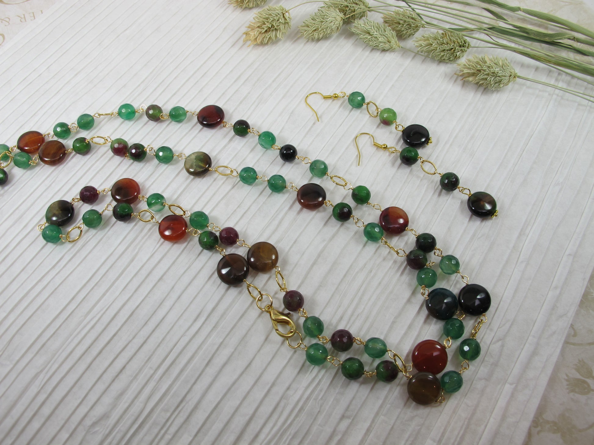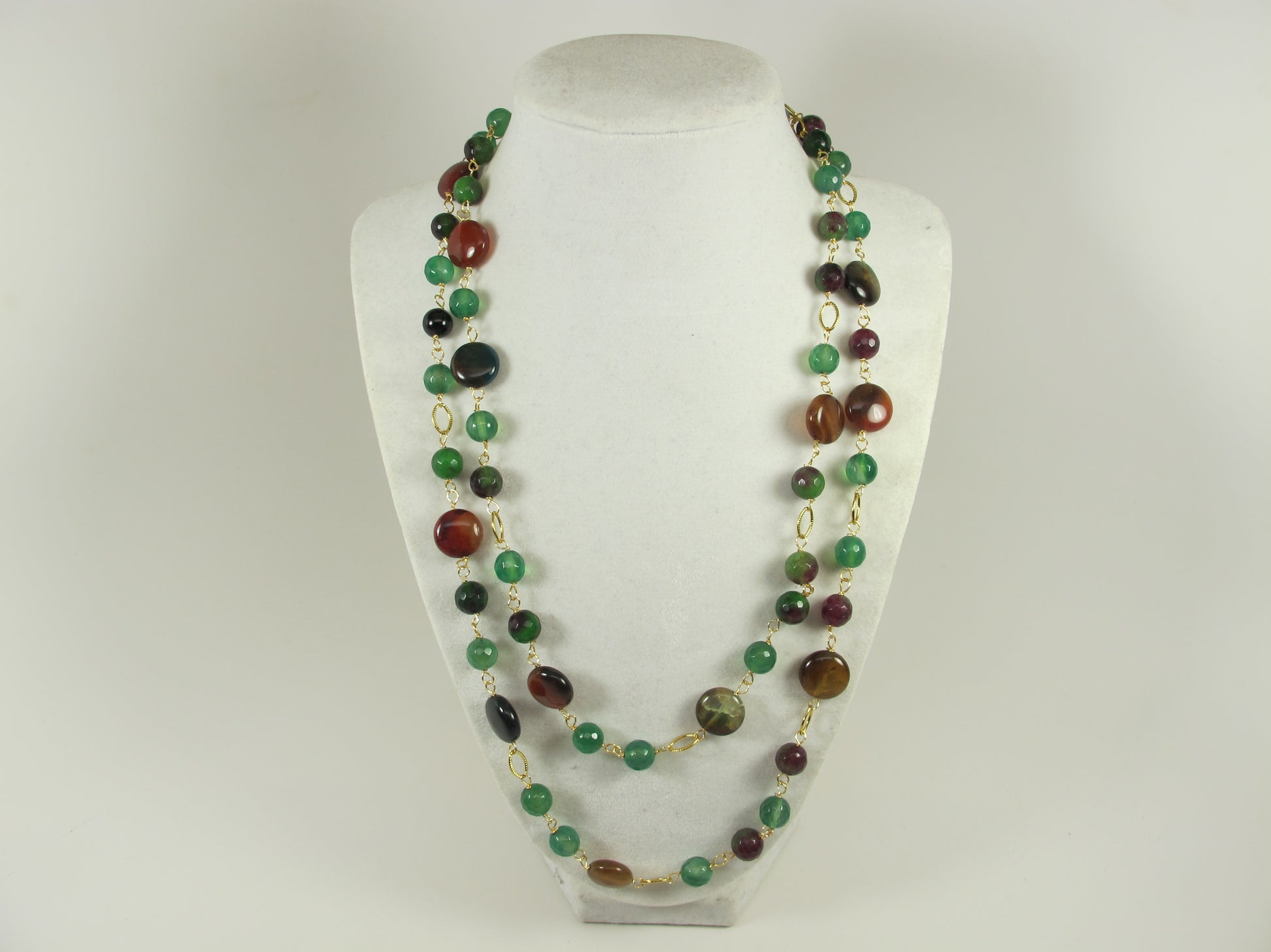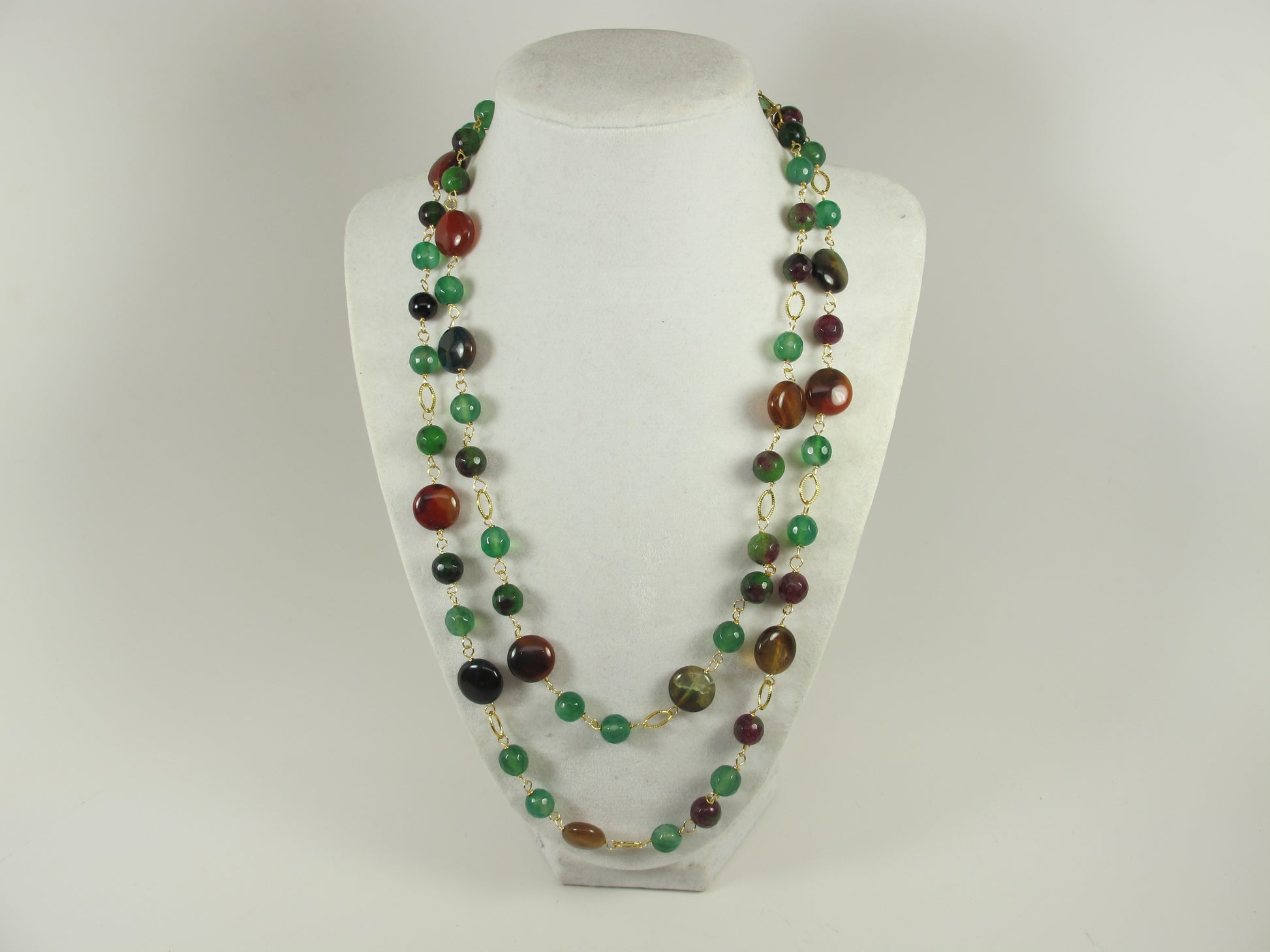 Long wire wrapped statement necklace featuring genuine agate and cornelian beads ,1 strands