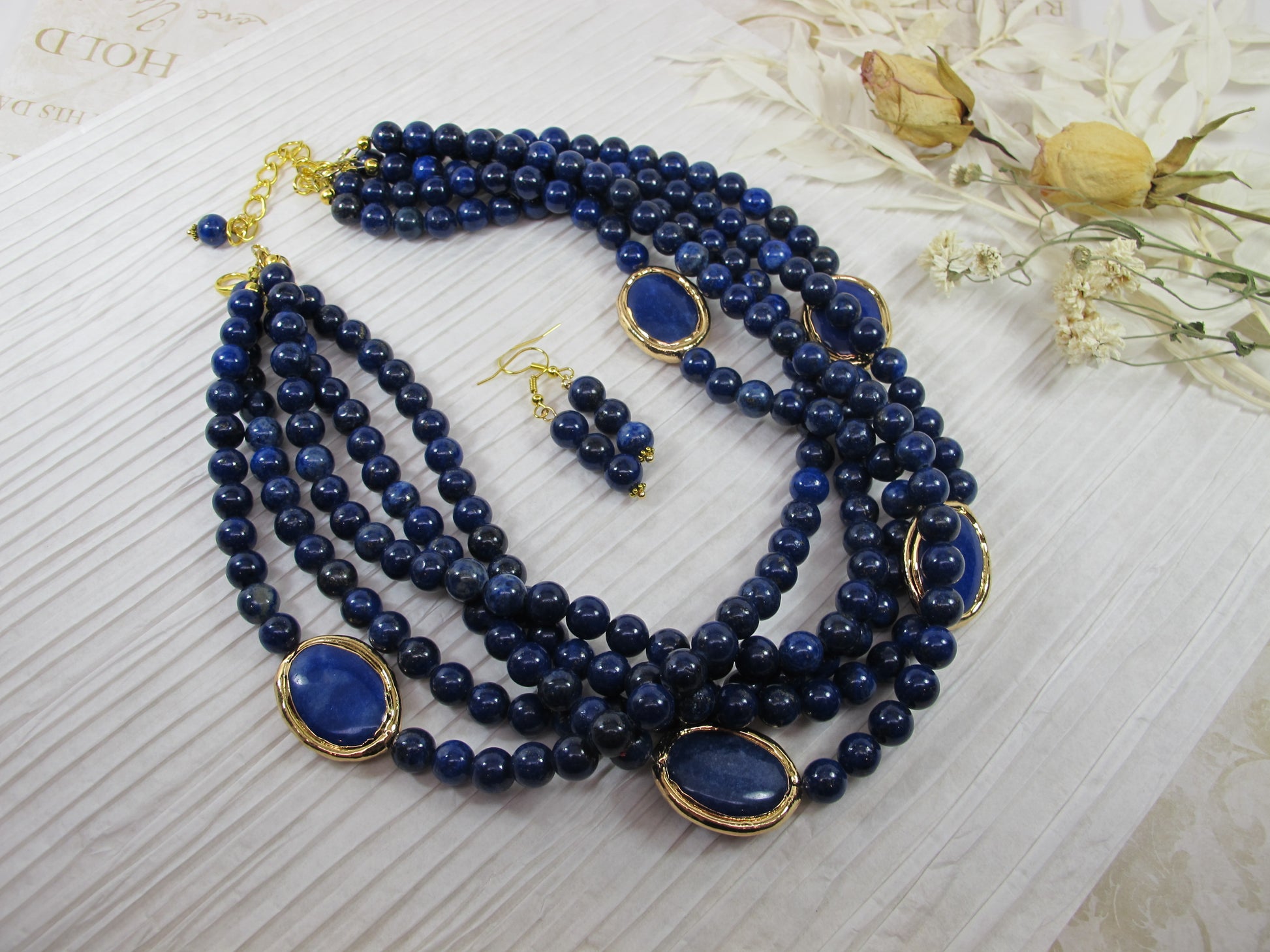 Natural blue lapis lazuli necklace, genuine blue gemstone necklace, chunky blue natural lapis lazuli gemstone necklace, royal blue