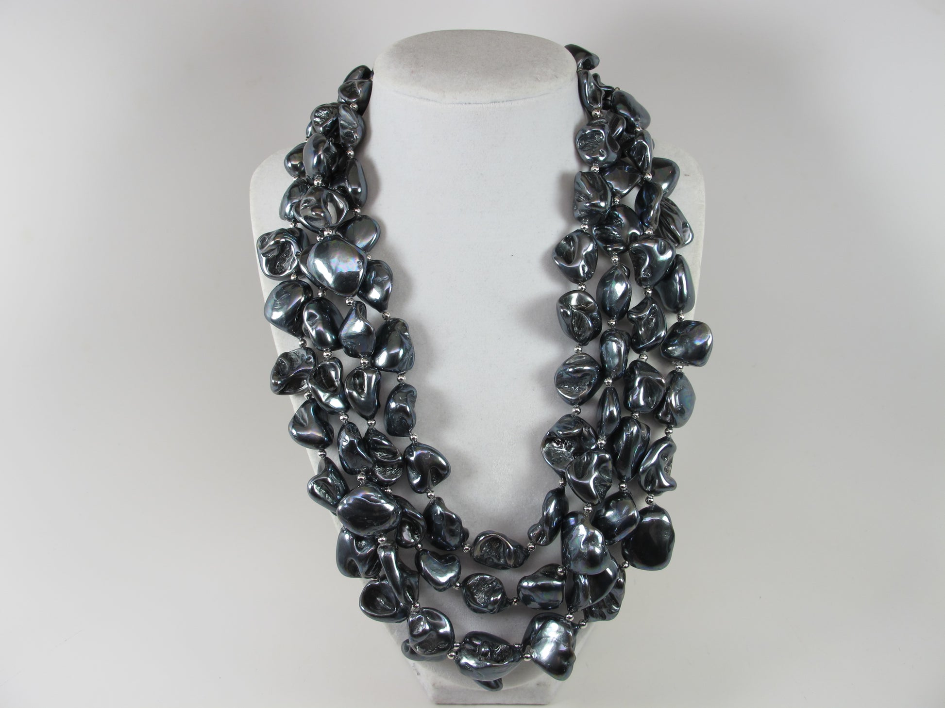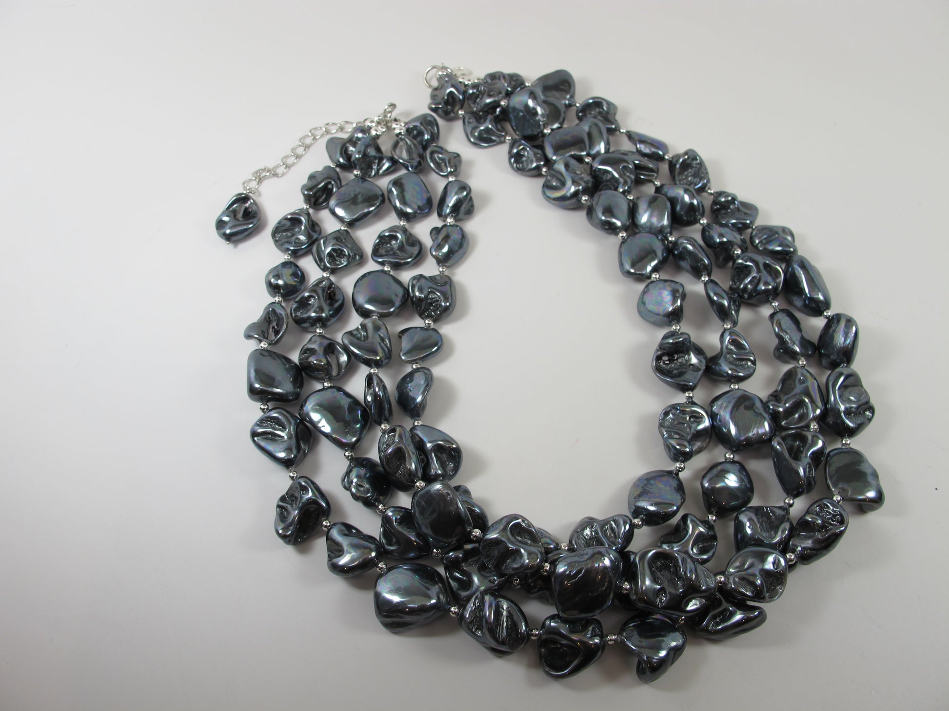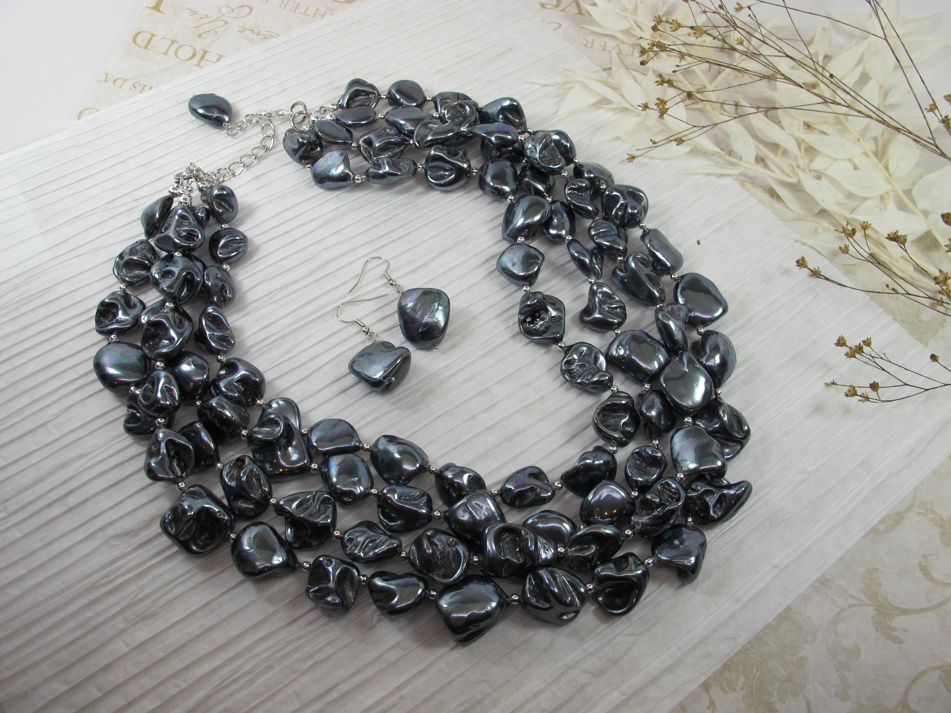 Shell black baroque pearl necklace, statement black mother of pearl necklace, chunky black baroque pearl jewelry 4 STRANDS!