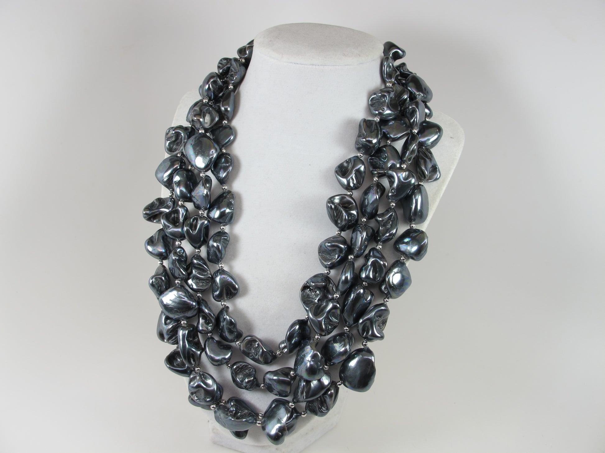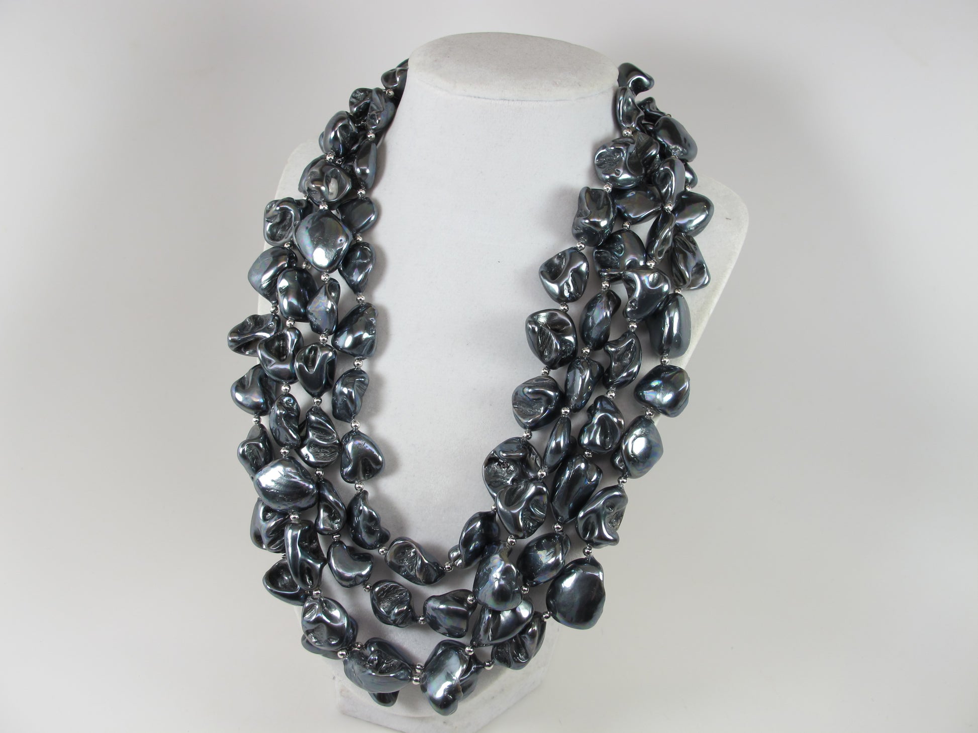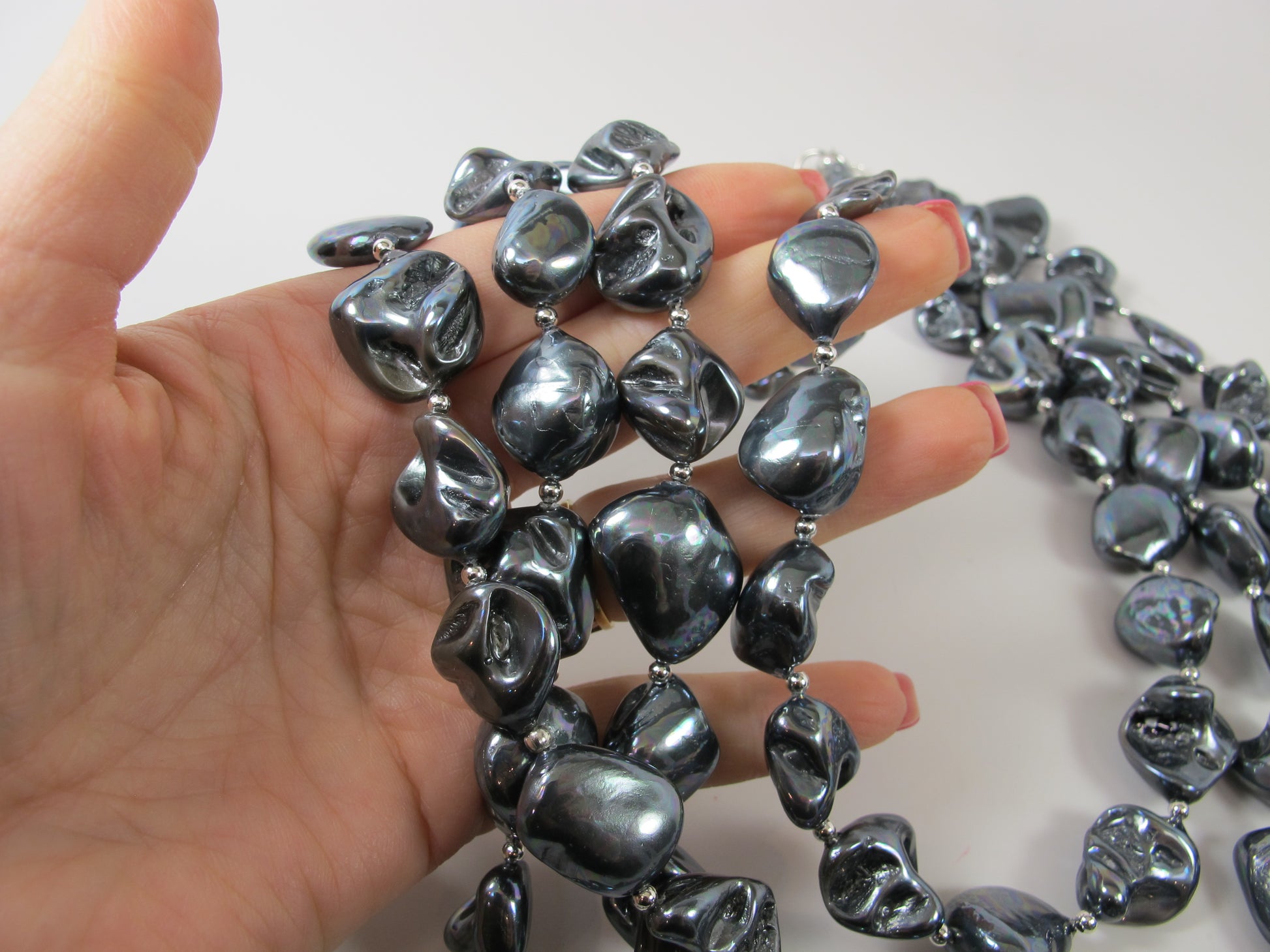 Really stunning, large baroque pearl necklace. The necklace made from shell black pearls and silver spacers. HEAVY!