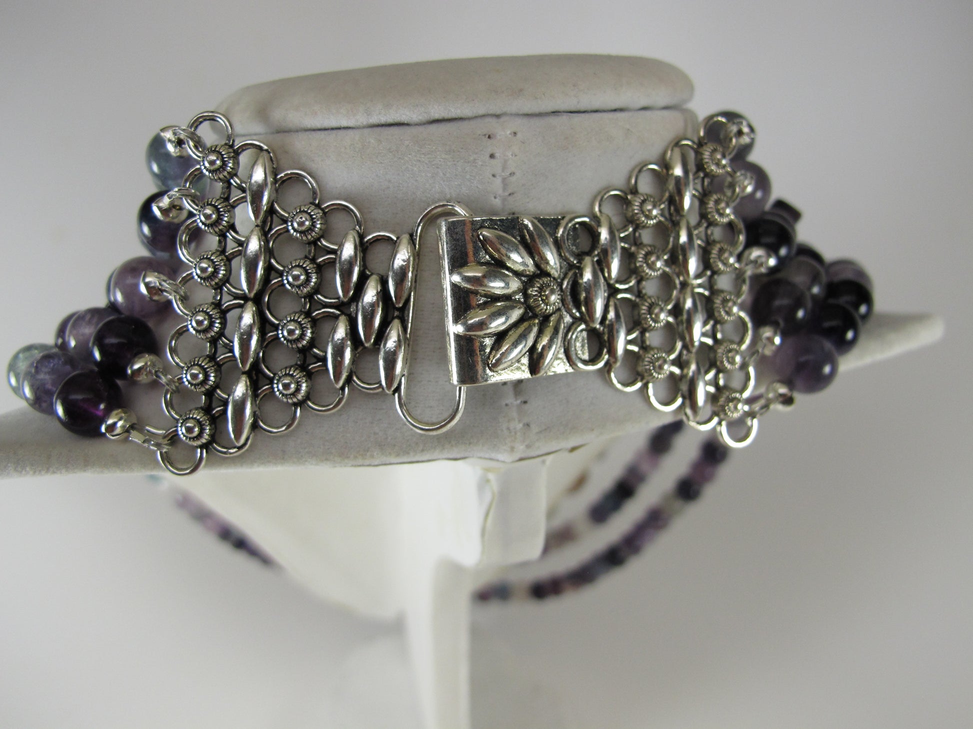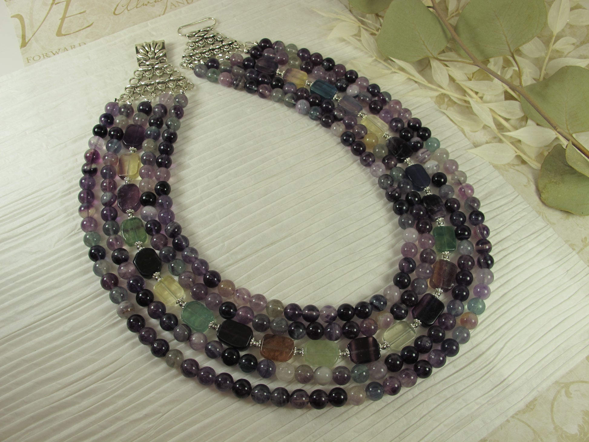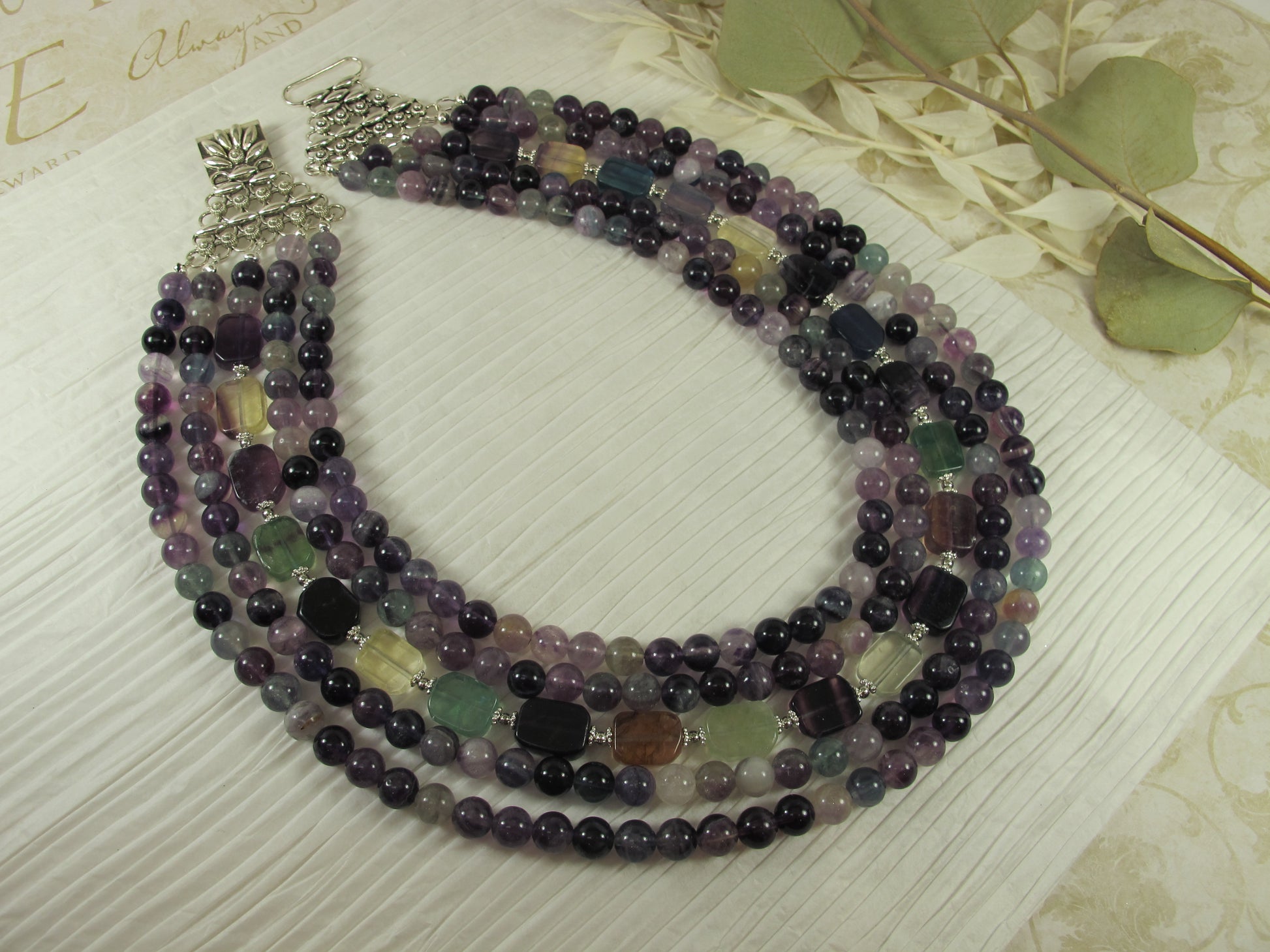 Statement fluorite gemstone necklace, multi strand statement purple necklace, amethyst necklace, rainbow gemstone, amethyst statement